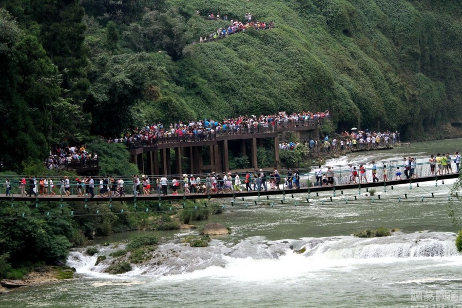 黄果树大瀑布迎游客高峰,单日接客近5万人